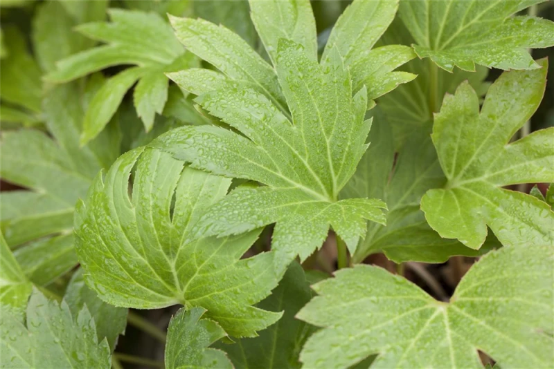 Das Ahornblatt (Mukdenia rossii) ist eine Staude, die von April bis Mai weiße Blüten bildet. An einem schattigen Standort mit humosem Boden erreicht es gewöhnlich eine Höhe von ca. 30 cm.