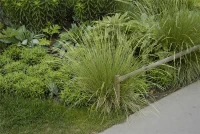 Hoher Blattschmuckwert. Die wintergrünen Blätter des Atlas-Schwingels sind grau-grün, lineal.