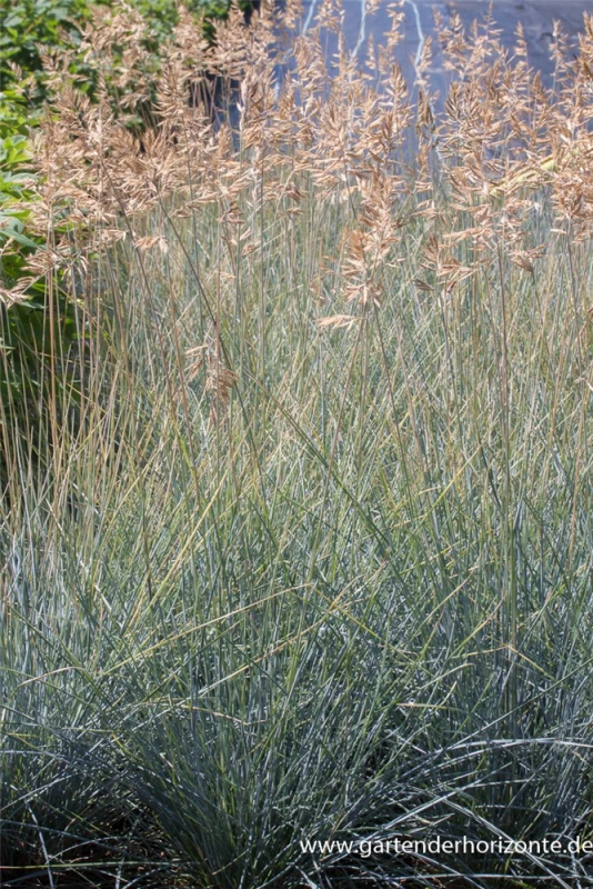 Der Blau-Schwingel (Festuca cinerea) ist mit seiner blau-grauen Blattfärbung ein dekoratives Gestaltungselement im Garten, welches sich an einem sonnigen Standort mit einem möglichst durchlässigen, sandigen Boden am wohlsten fühlt. Die cremeweißen Blütenwedel schmücken die kompakt und polsterbildend wachsende Pflanze ab Sommer. Bei günstigen Bedingungen erreicht dieses winterharte Gras eine Höhe von ca. 25 cm und wird bis zu 30 cm breit.