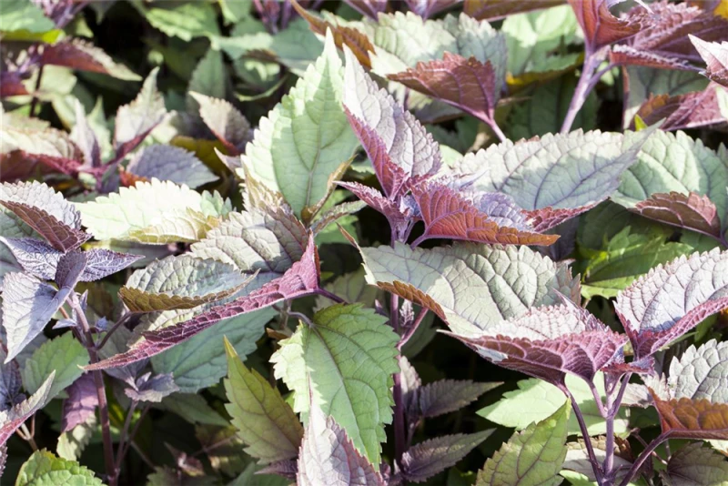 Die sommergrünen Blätter des Braunblättrigen Garten-Wasserdosts ‚Chocolate‘ sind bordeauxrot, lanzettlich.