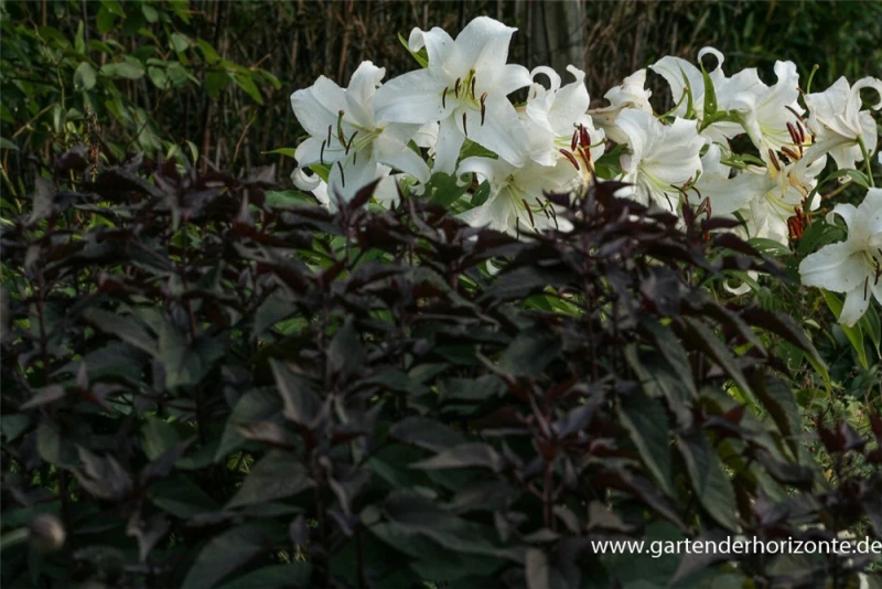 Der Braunblättrige Garten-Wasserdost ‚Chocolate‘ (Eupatorium rugosum) ist eine aufrechte Staude, die von August bis September weiße, in Doldentrauben angeordnete Blüten bildet. An einem sonnigen bis halbschattigen Standort mit durchlässigem, humosem Boden erreicht er gewöhnlich eine Höhe von ca. 1 m und wird ca. 80 cm breit. Der Braunblättrige Garten-Wasserdost ‚Chocolate‘ ist gut frostverträglich.