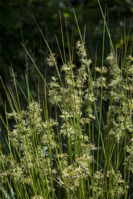 Die Flatter-Binse (Juncus effusus) ist mit ihren mittelgrünen Blättern eine ausgesprochen dekorative Wasserpflanze, die für solche Einsatzbereiche wie Teichrand, Bachlauf, Teich, Beeteinfassung, Gehölzrand, Kübel und Staudenbeet besonders gut geeignet ist. Die Blüten erscheinen, je nach Sorte, in vielen Farben von Juli bis August. Sie bevorzugt humosen, kalkfreien Boden in sonniger bis halbschattiger Lage. Die Flatter-Binse ist gut frostverträglich. Die aufrechte, horstbildende Staude erreicht gewöhnlich eine Höhe von ca. 80 cm.