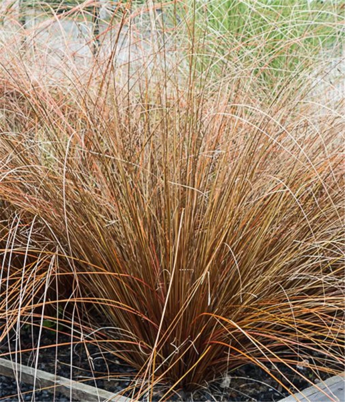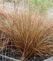 Die Fuchsrote Neuseeland-Segge (Carex buchananii) ist mit ihrer braunen Blattfärbung ein dekoratives Gestaltungselement im Garten, welches sich an einem sonnigen bis halbschattigen Standort mit einem möglichst durchlässigen, lockeren, nährstoffreichen Boden am wohlsten fühlt. Die rot-braunen Blütenwedel schmücken die aufrecht und horstbildend wachsende Pflanze ab Sommer. Bei günstigen Bedingungen erreicht dieses Gras eine Höhe von ca. 40 cm und wird bis zu 40 cm breit.