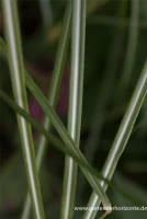 Hoher Blattschmuckwert. Die sommergrünen Blätter des Garten-Chinaschilfs ‚Federweißer‘ sind mittelgrün, lineal.