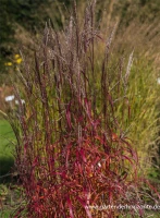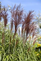 Die rot-braunen Blüten des Garten-Chinaschilf ‚Ghana‘ erscheinen in Rispen von September bis Oktober.