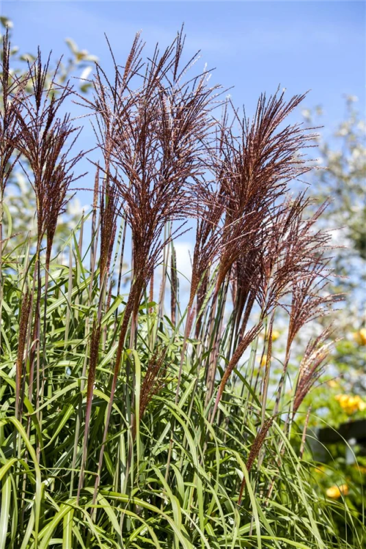 Garten-Chinaschilf ‚Ghana‘ ist auch unter diesem Namen bekannt: Garten-Chinaschilf, Garten-Landschilf oder Eulalie.