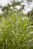 Hoher Blattschmuckwert. Die sommergrünen Blätter des Garten-Chinaschilfs ‚Zebrinus‘ sind gelb-grün, lineal.