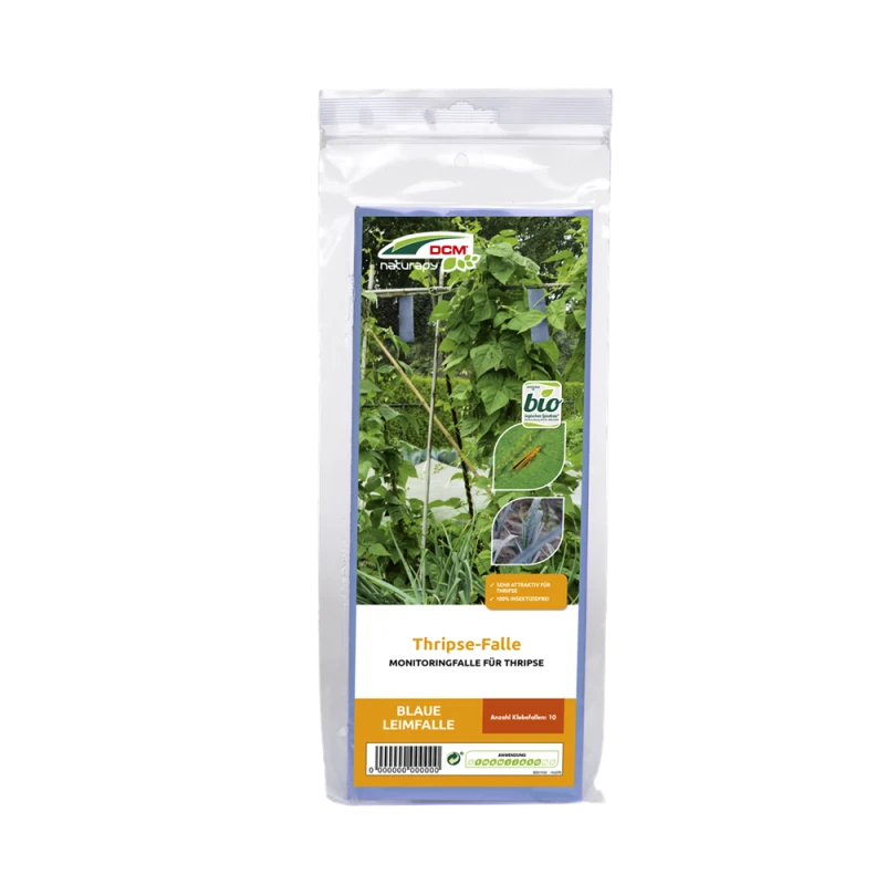 Zieht Thripse (Gewittertierchen) an und fängt sie zum Monitoring ab. Gift- und pheromonfrei. Lockwirkung durch Farbsignal. Langanhaltende Klebekraft dank witterungsbeständigem Leim. Anwendung: Anwendungsperiode von Februar – Oktober.