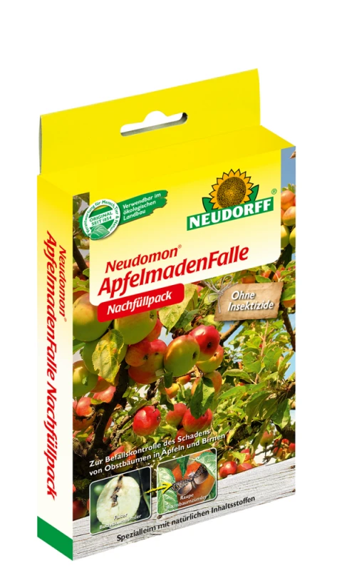Das Set besteht aus 2 Leimböden und 2 Pheromonkapseln gegen Obstmaden in Äpfeln und Birnen. Zur Nachbestückung einer vorhandenen Neudomon-Falle.