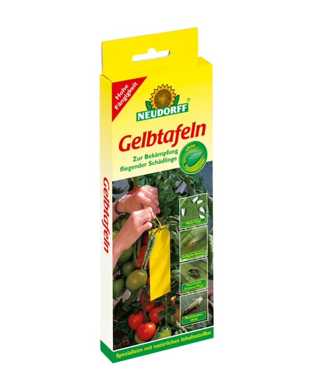 Zum Abfangen fliegender Schädlinge (z.B. Weiße Fliege, geflügelte Blattlaus, Minierfliege und Trauermücke) im Gewächshaus und Wintergarten. Auch zum Abfangen von Rhododendronzikaden im Freiland. Insektizidfreier, auch bei hohen Temperaturen nicht abtropfender Spezialleim. Mit Bindedraht. Anwendung: 1 Tafel/qm oder 1 Tafel/m Blumenbank. Die Tafeln gleichmäßig auf die Fläche verteilt zwischen den Pflanzen aufhängen.
