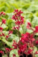 Hoher Blattschmuckwert. Die wintergrünen Blätter des Purpurglöckchens sind rosarot, dunkelrot geädert, rundlich, gekerbt.
