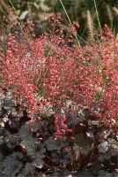 Das Purpurglöckchen (Heuchera) ist eine buschige wintergrüne Staude mit dekorativen, rundlichen, rosaroten Blättern. An einem sonnigen bis halbschattigen Standort mit durchlässigem, nährstoffreichem Boden erreicht es gewöhnlich eine Höhe von ca. 50 cm und wird ca. 40 cm breit. Das Purpurglöckchen ist gut frostverträglich.