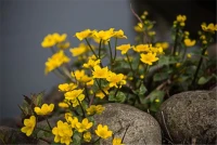 Die Sumpf-Dotterblume (Caltha palustris) ist mit ihren dunkelgrünen Blättern eine ausgesprochen dekorative Wasserpflanze, die für solche Einsatzbereiche wie Teichrand, Bachlauf, Teich und Bienenweide besonders gut geeignet ist. Die angenehm duftenden Blüten erscheinen, je nach Sorte, in vielen Farben von März bis Mai. Sie bevorzugt lockeren, sandigen Boden in sonniger bis schattiger Lage. Die Sumpf-Dotterblume ist gut frostverträglich. Die horstbildende Staude erreicht gewöhnlich eine Höhe von ca. 50 cm.